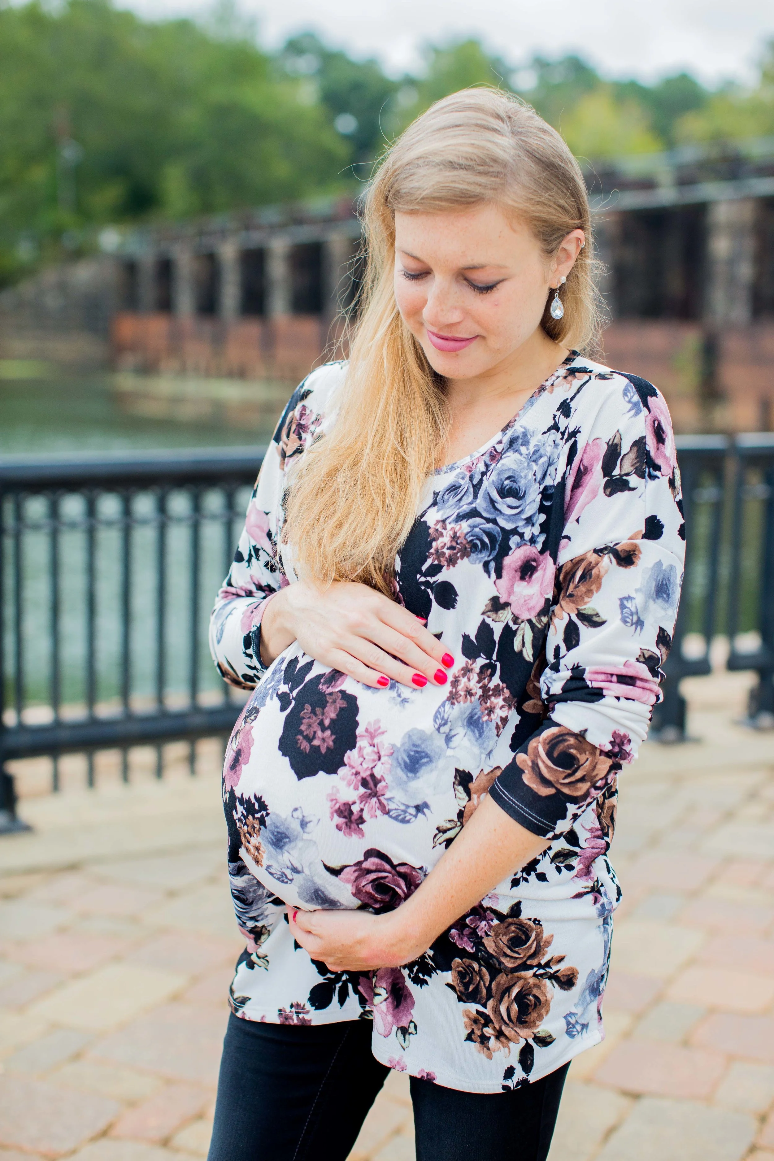 I was really excited to get this floral top. Although it is comfy, and has the most beautiful pattern, it is too big on me. I am shorter than the average woman, and definitely shorter than the women who model these pieces. This top is longer on me, and is a very loose fit. The smallest size Pink Blush offers in maternity, is a small. If this were a size XS, I think it would fit more to my liking. I am really looking forward to wearing this after pregnancy, because I think it will lay better - more like a tunic.