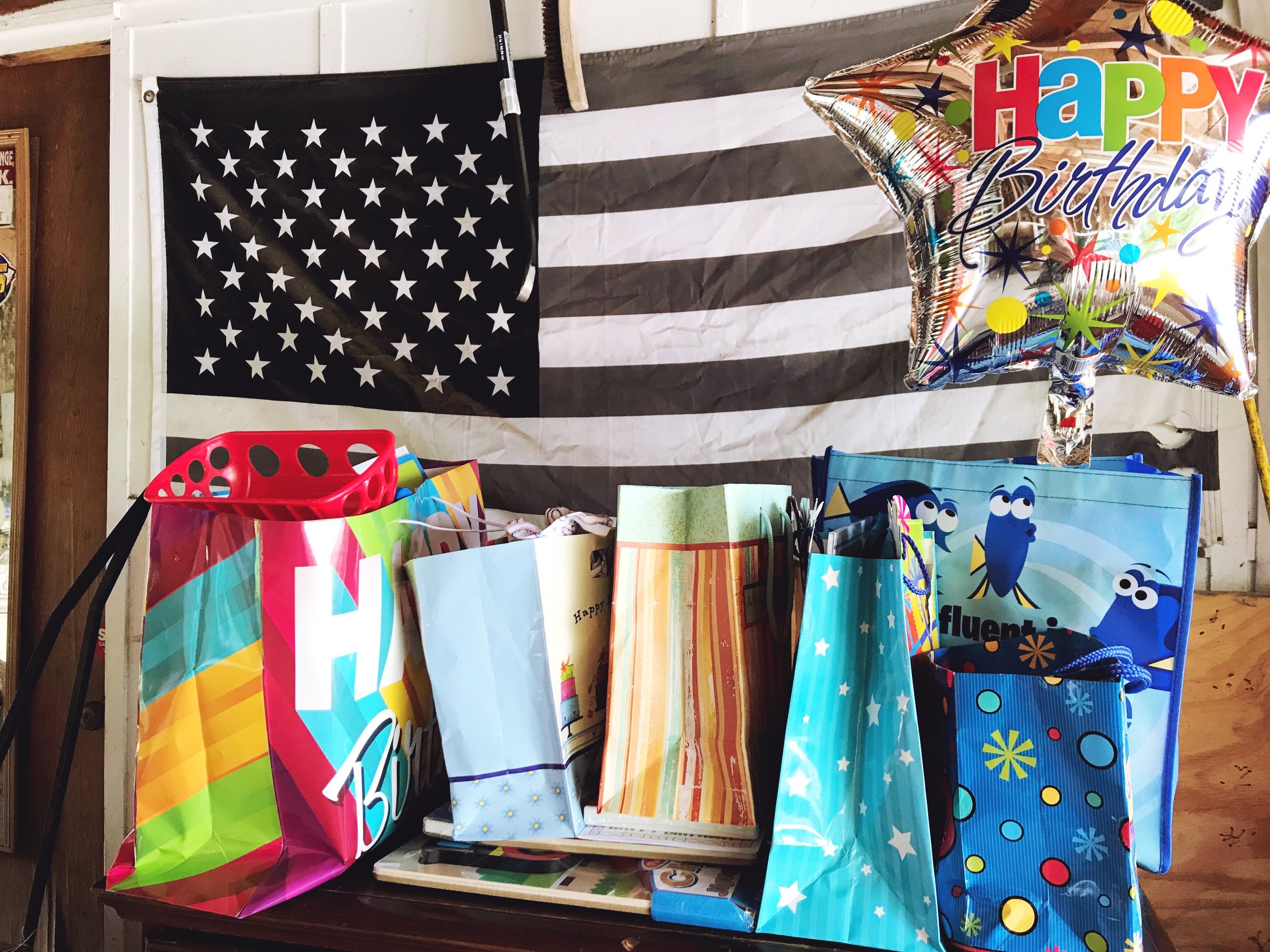 1. Place for opening presents. Since we were outside and everyone was wet, we just opened the gifts outside and then kids could go back to playing.