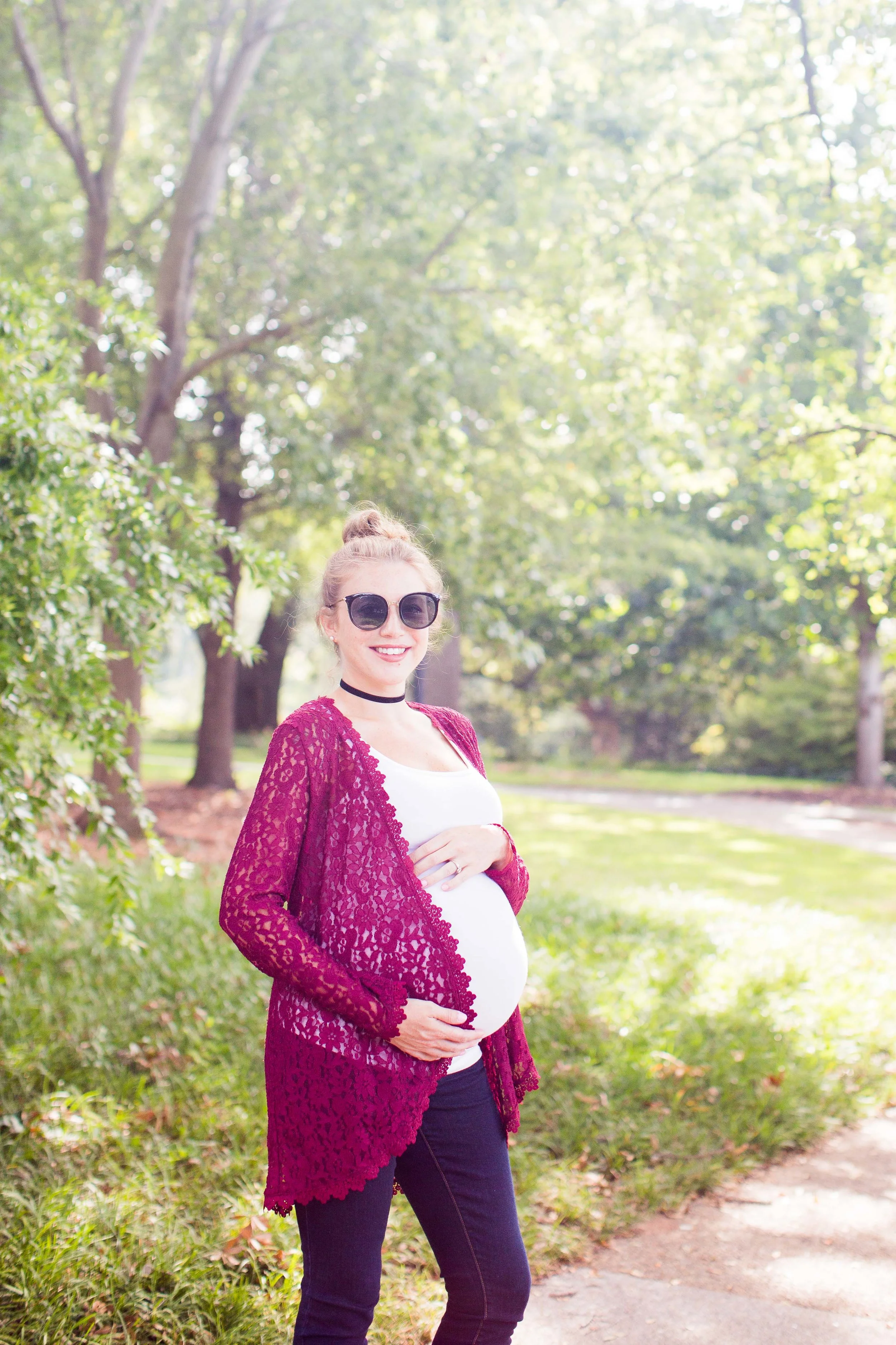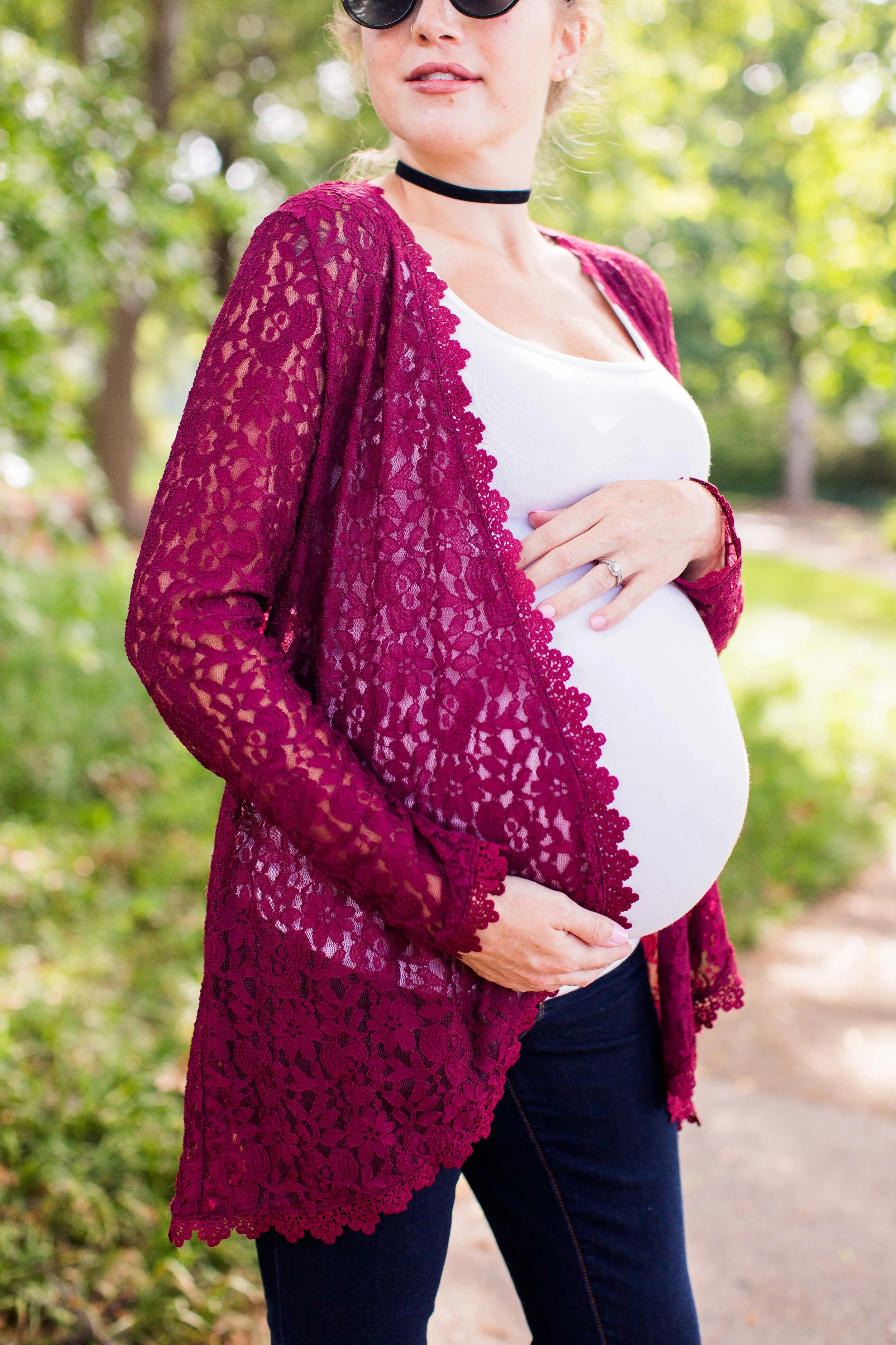 That's why every pregnant woman needs both these types of pieces in her fall maternity wardrobe. A darling cardigan that will go with everything, and keep the autumn chill at bay. And a glammed up tunic that will adjust to a growing baby bump. Bonus points if they're lace!! <3 Amanda