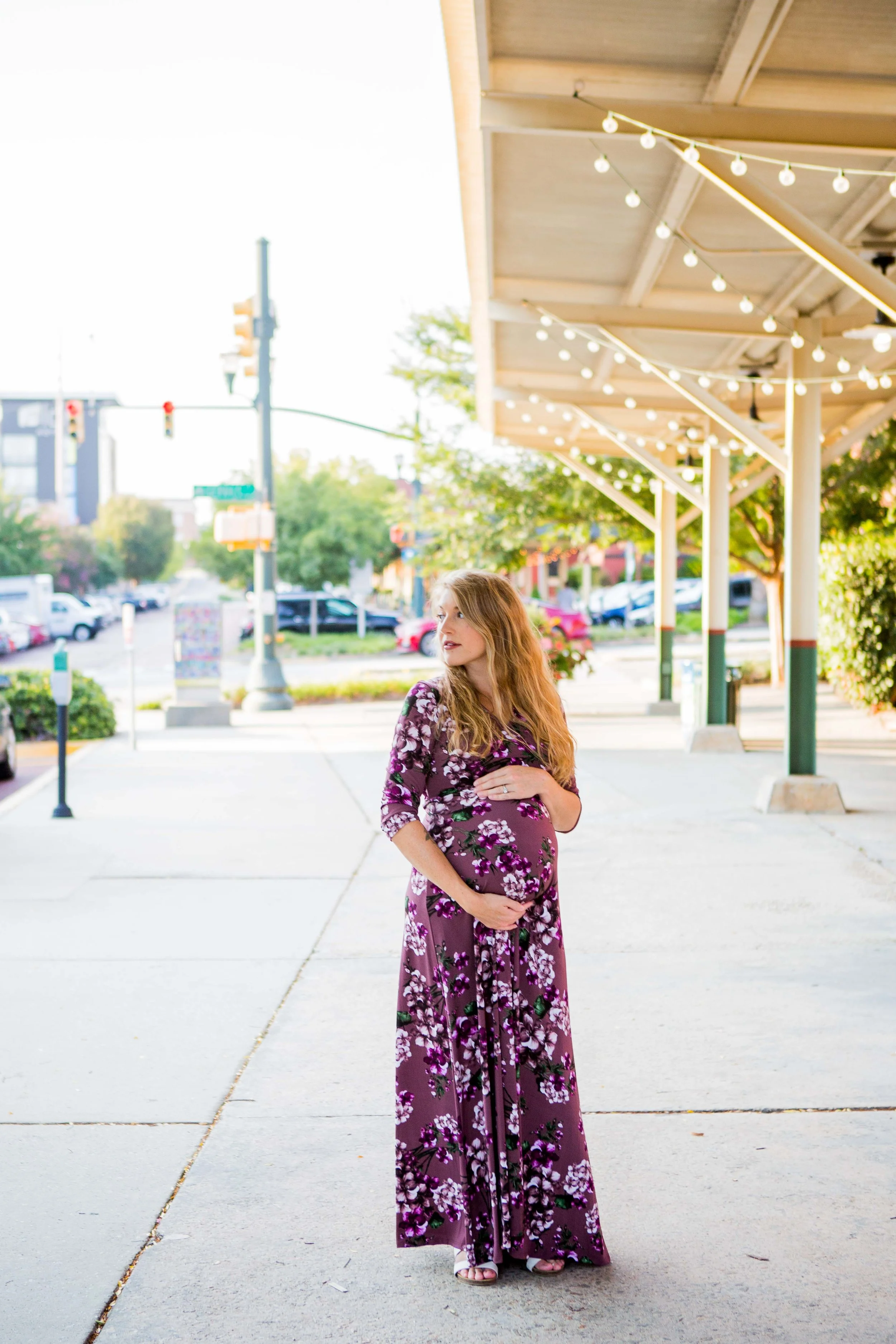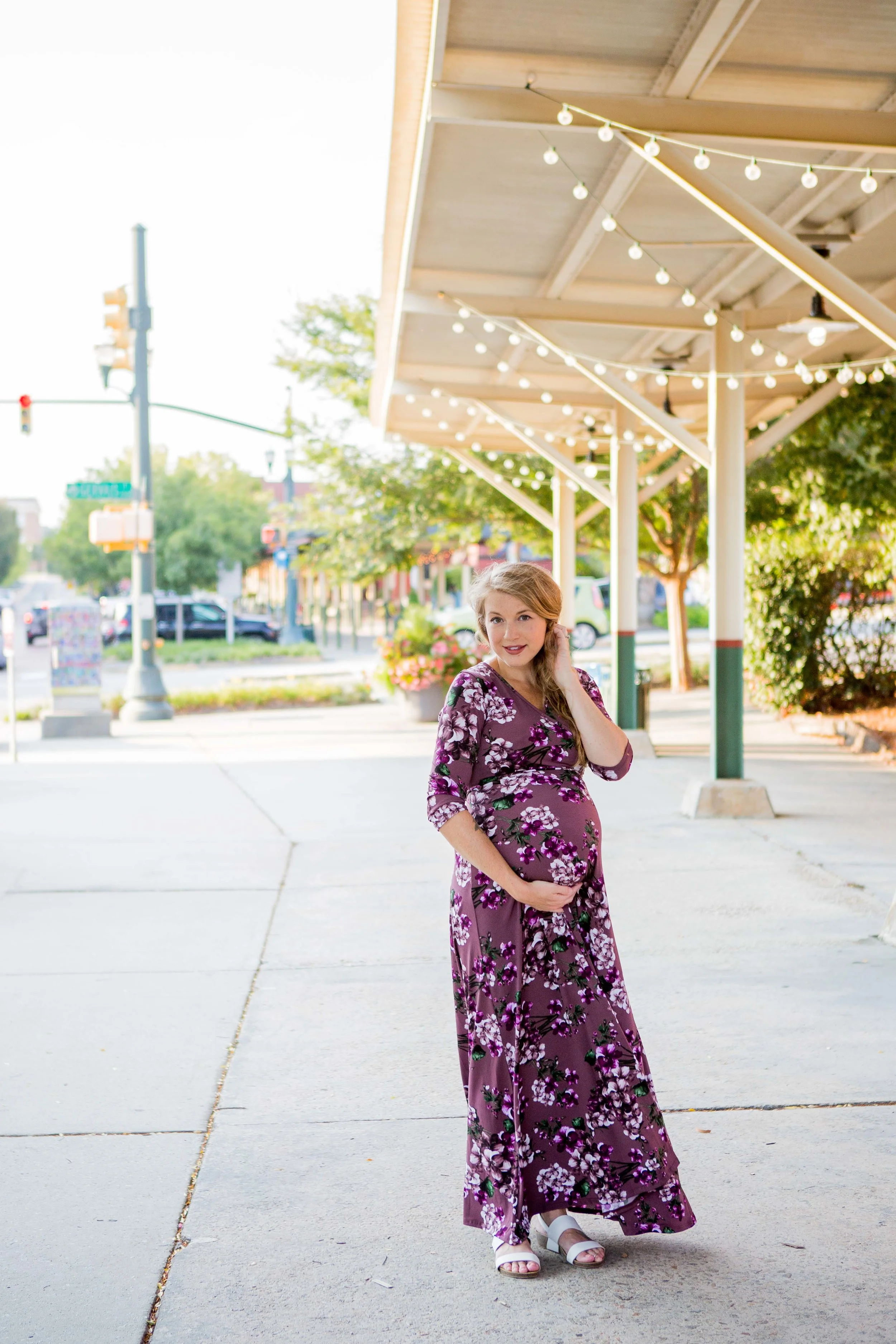I've got some more fabulous pieces for all my pregnant mamas out there. These lovelies are from my favorite online boutique, and will make you feel like you've just stepped out of a fairytale! They are both purple florals that are perfect for fall and any occasion.