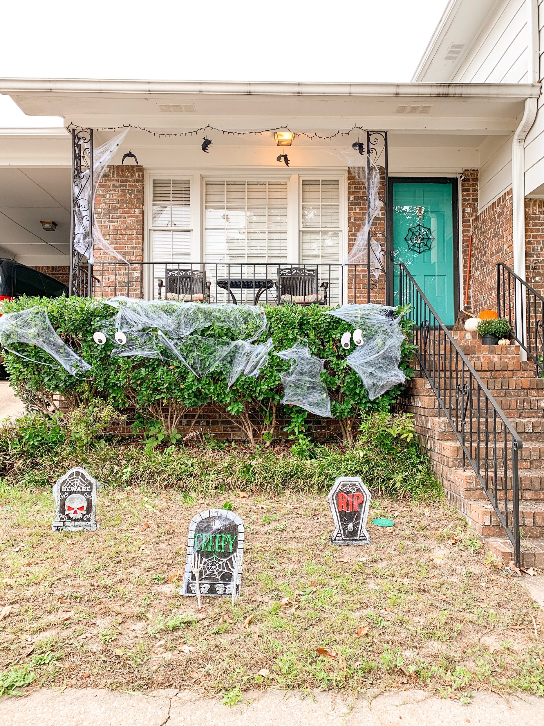 Don’t forget about your door! One of the easiest places to decorate for Halloween is your front door. Spider webs and a spider wreath are just spooky enough!