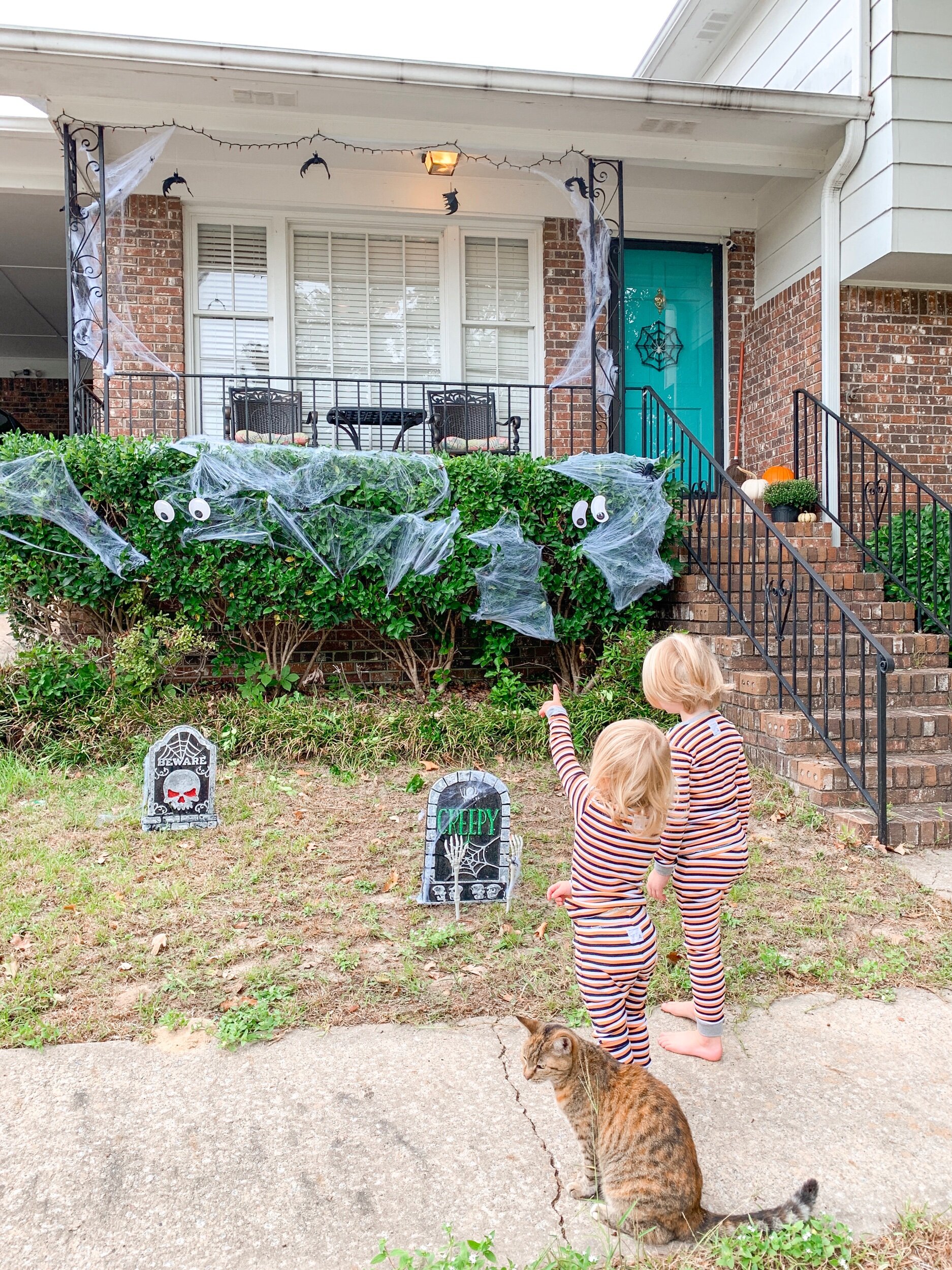 My kids LOVE these Halloween decorations. They don’t care that they’re only $1. They don’t mind that I only spent $13 on this whole spooky, graveyard display. And you certainly won’t see me complaining about it!