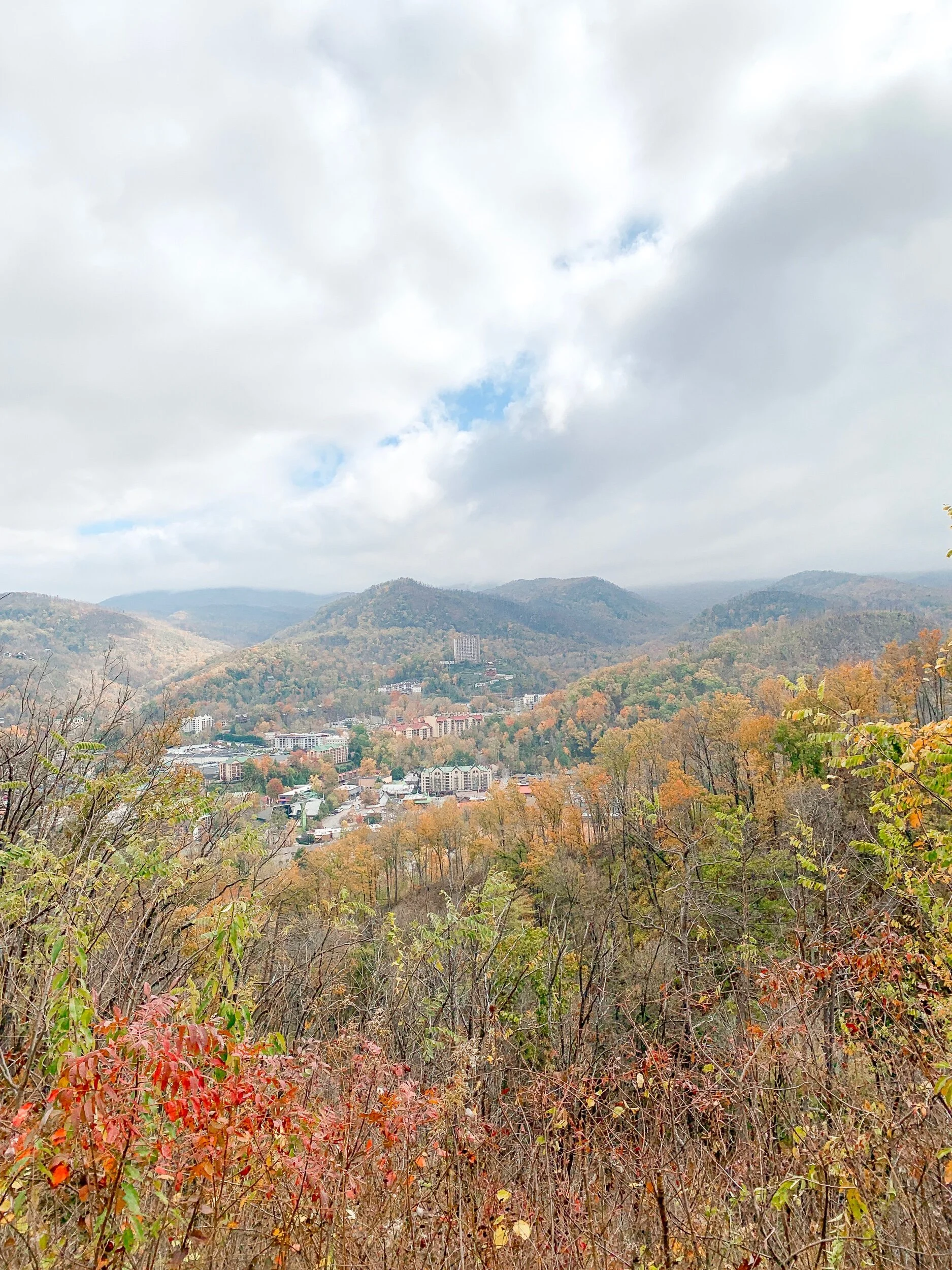 Fall leaves and mountain views in Gatlinburg Tennessee in the Great Smoky Mountains is gorgeous!