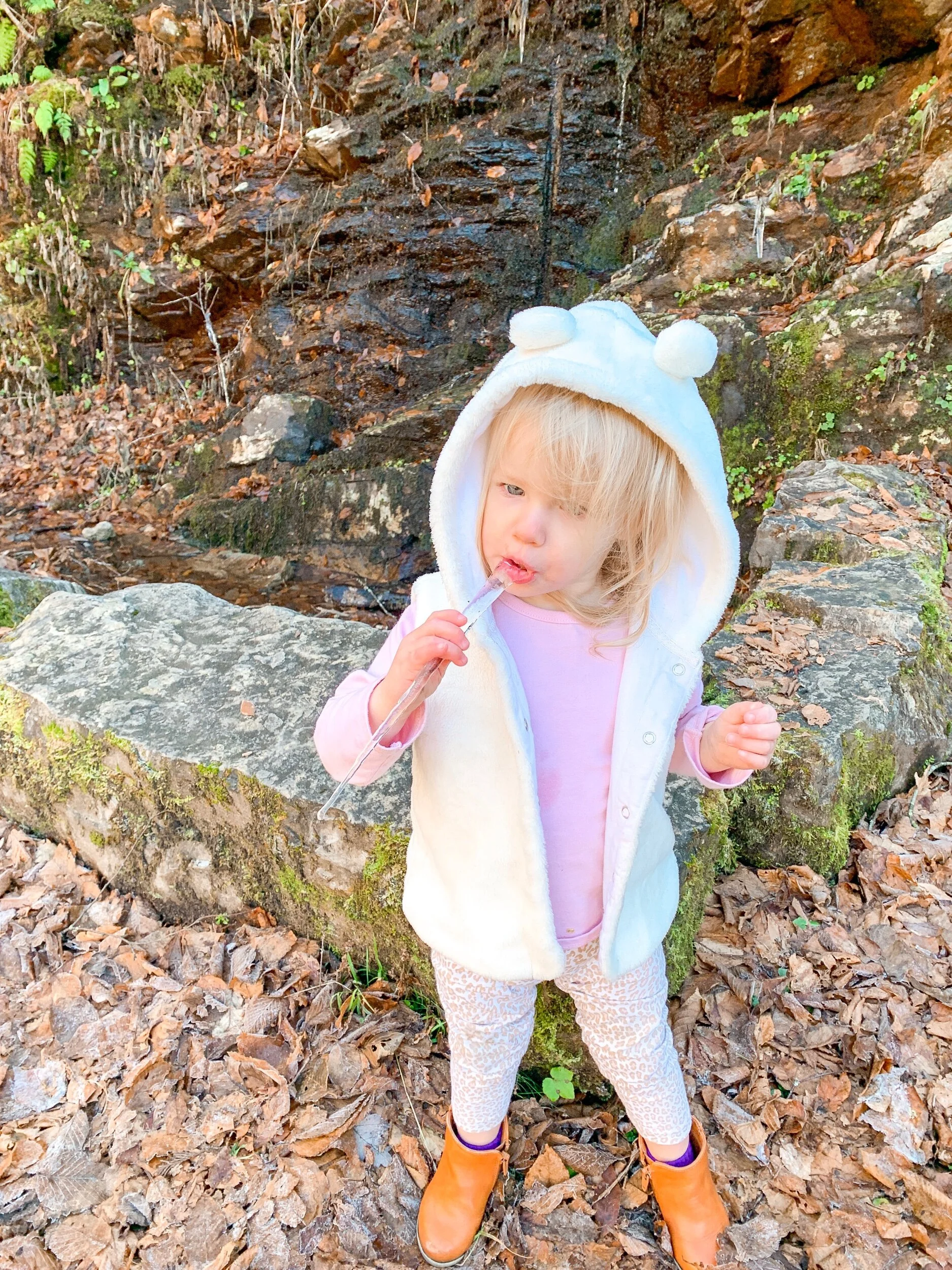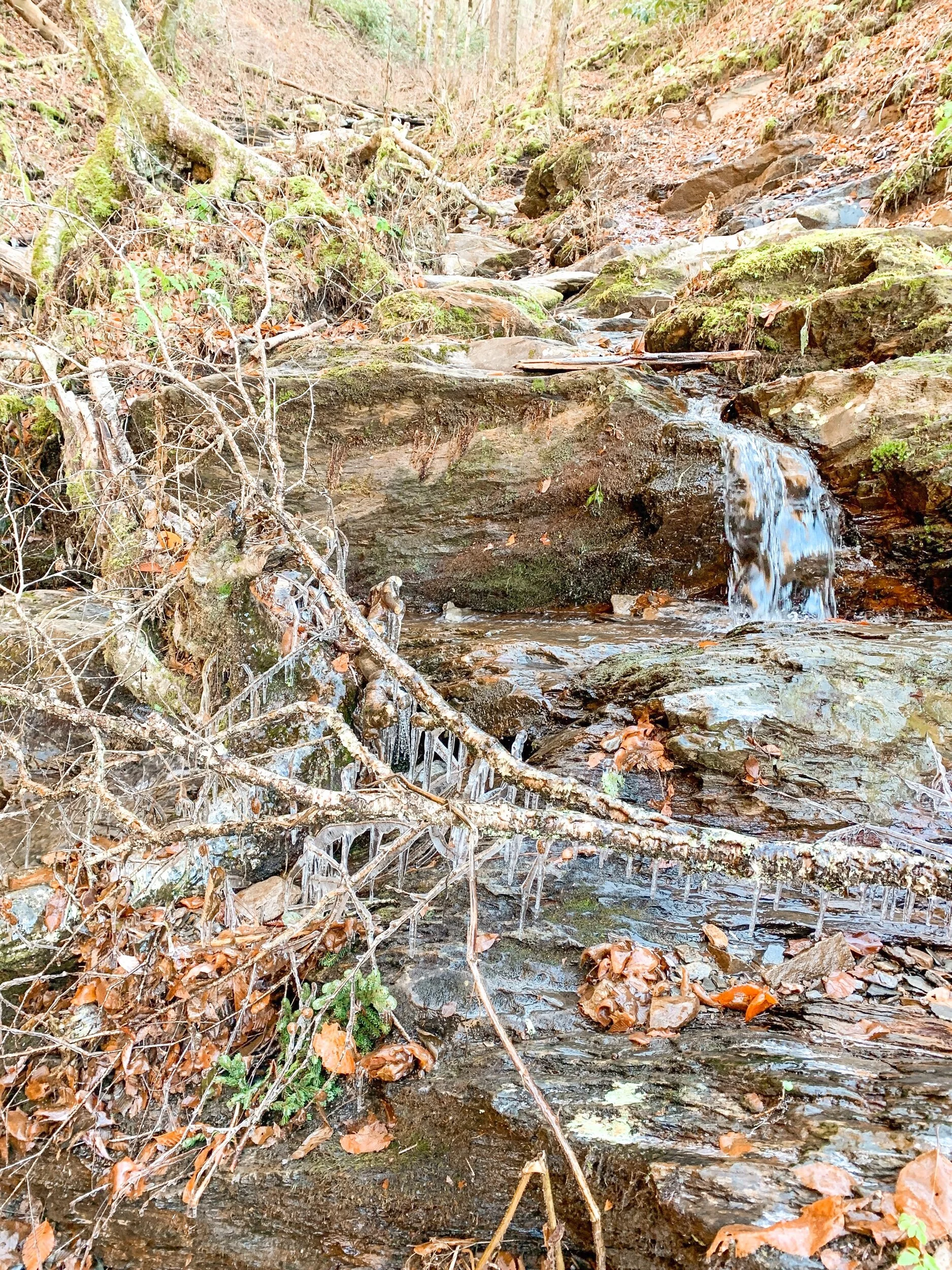 Mountain Creek: cute little creek waterfall coming down the mountain. It was so cold, there were icicles and we all had a little frozen treat.