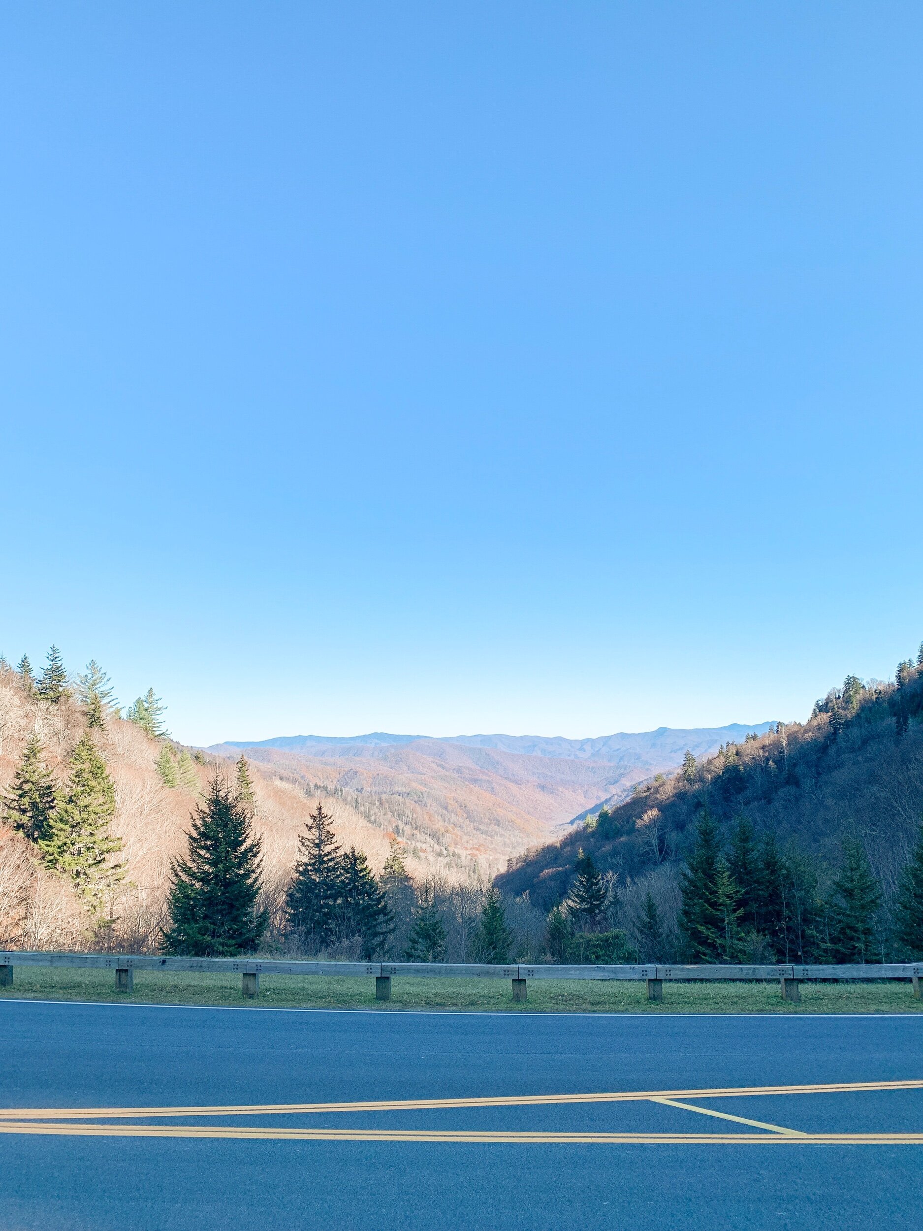 Before we left, my husband had to pull over and get our gps working (no signal while you’re in the mountains!) and this view over Oconaluftee Overlook was stunning.