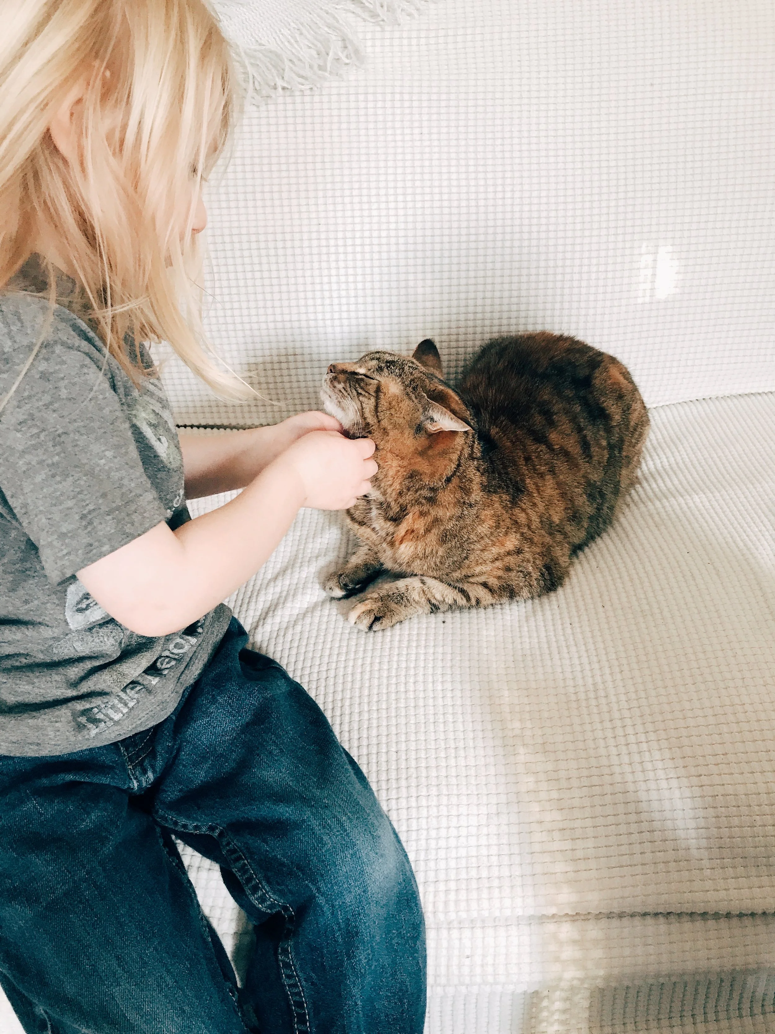 He loves to help feed the kitty. It’s one of his favorite things to do and is a great age-appropriate responsibility :)