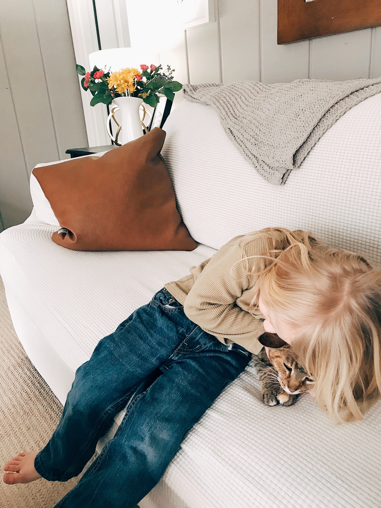 First of all, I officially have two toddlers now! My one year old started walking and she hasn’t stopped since. Both of my kids keep Corey on her toes and moving. She really does love them (and all the attention they give her) but she also wants her space. What cat doesn’t? When the kids are a bit “extra”, she runs as far away as possible to hide (much to my children’s disappointment). So she’s definitely checking her “fitness” goals off. No more lazy cat naps while those two are running around!