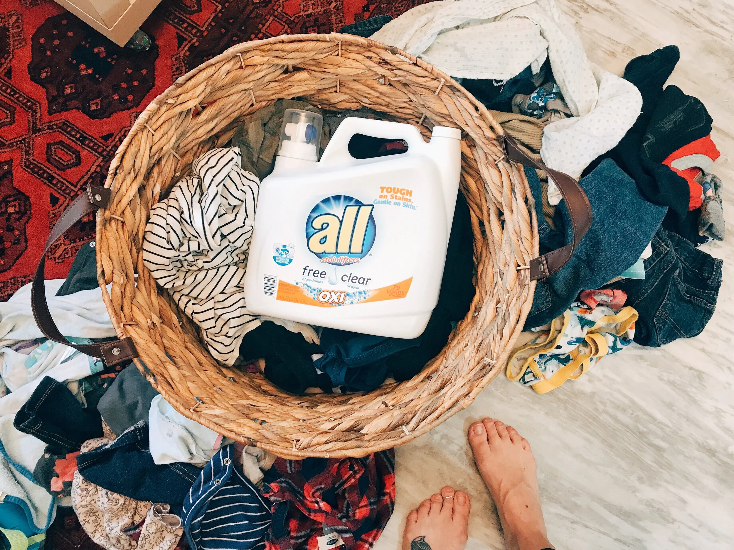 Use all® free clear laundry detergent. I have been using this laundry detergent for a few years now. I started using it during my first pregnancy back in 2014. There were so many little onesies, burp cloths, bibs, blankies and crib sheets to wash! Everything I read recommended baby detergents for their sensitive baby skin, which makes sense. But I didn’t want to use baby detergents because they were too expensive and in too small quantities. I found all® free clear and thought it would be a good alternative. It’s the #1 brand recommended by dermatologists, allergists & pediatricians for sensitive skin. I've used it for both my babies and our whole family ever since. It’s very cost effective (which is important to our family), gets our clothes clean and a gentle option for those with sensitive skin.