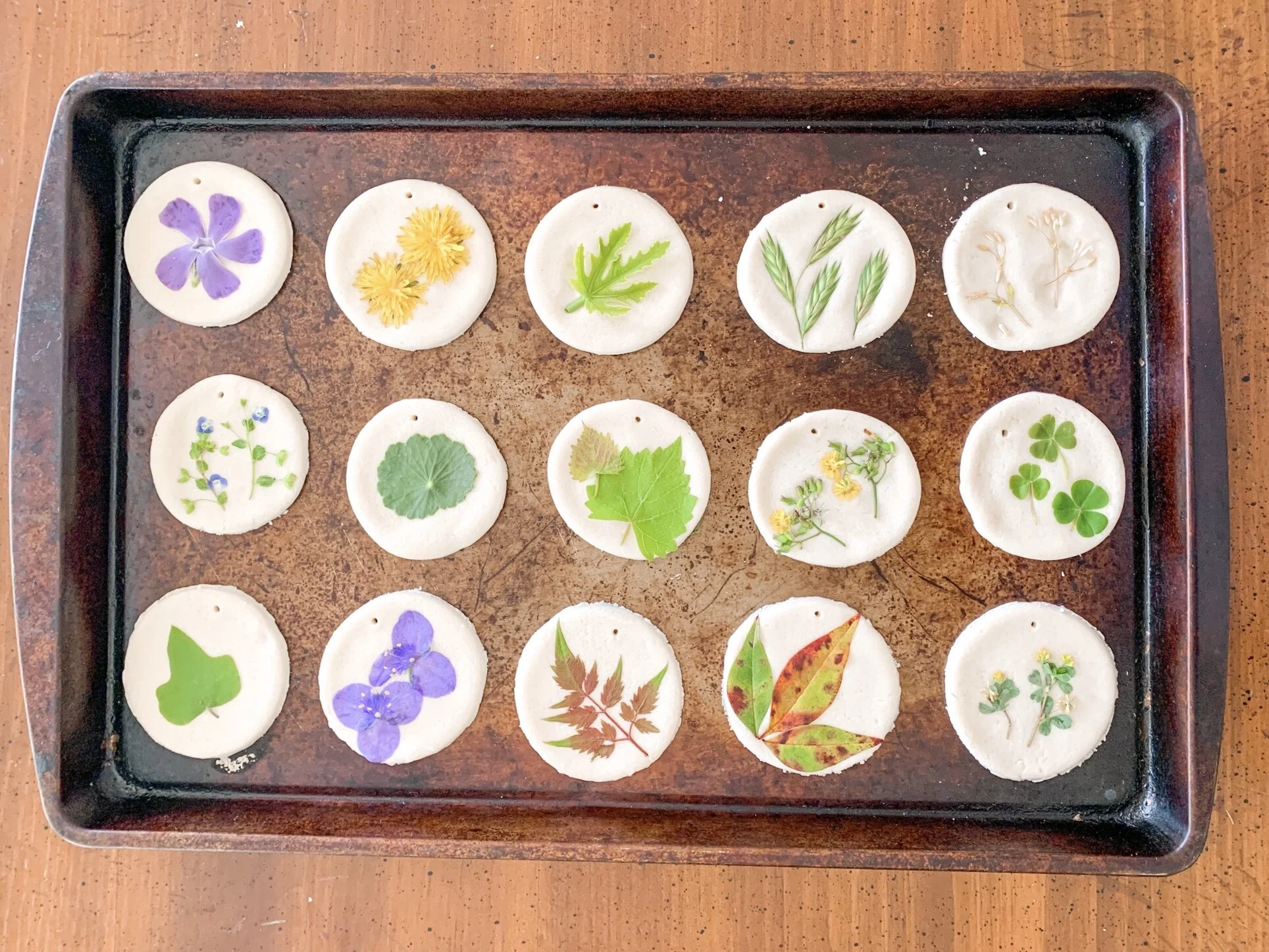 Hopefully this post was helpful for y’all wanting to make these fun DIY Salt Dough Ornaments and Easy Mobile! We had so much fun picking out the flowers and leaves for this craft.