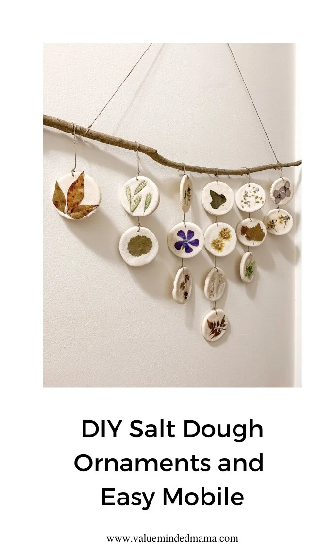 Tell me in the comments if you made these nature salt dough ornaments and/or the mobile! Tag me @valuemindedmama if you post to social media so I can see your design!
