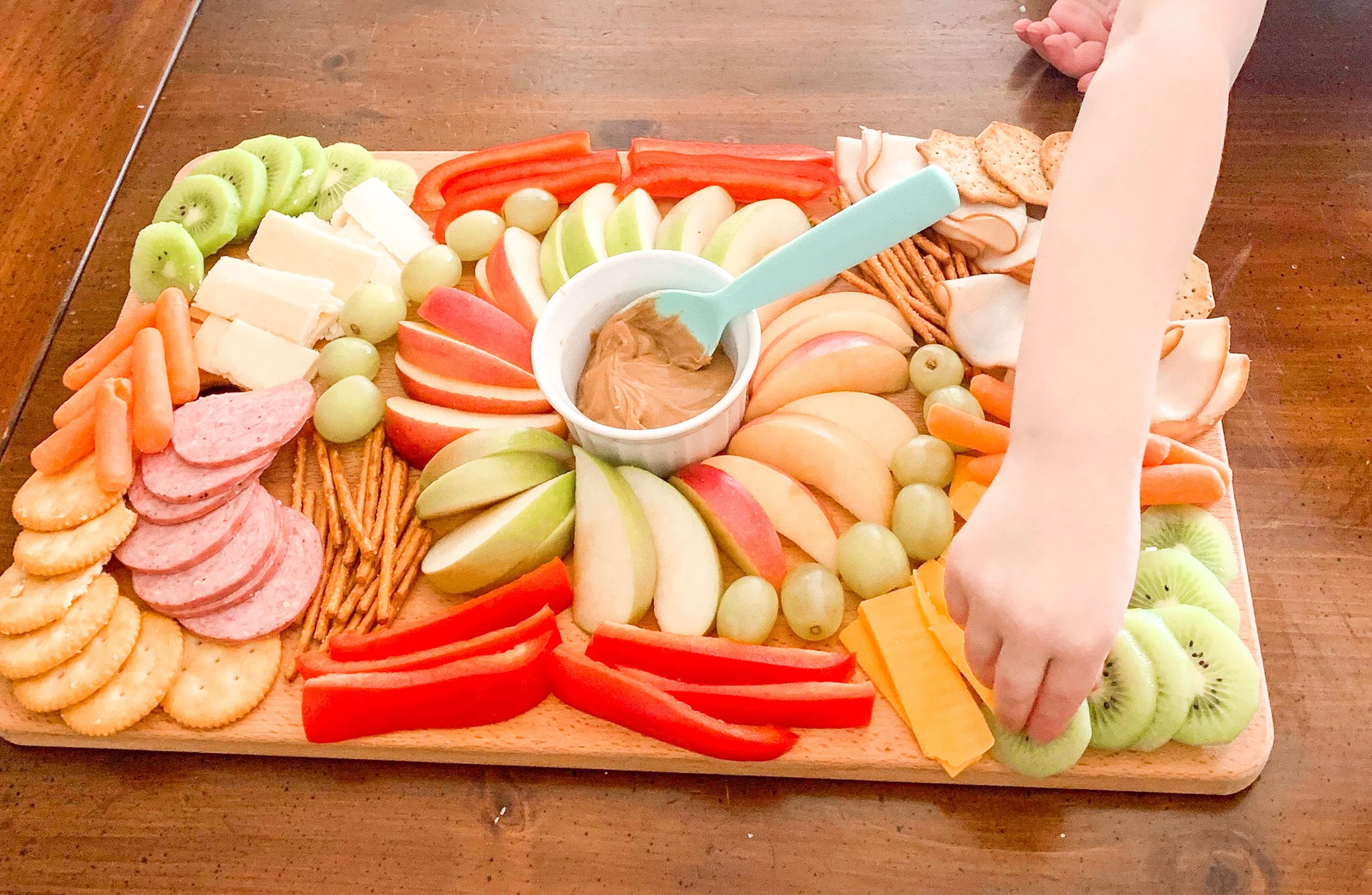I am really excited to be sharing how to make a family friendly charcuterie snack board with y’all today! I love creating these as easy kid’s meals, for our friends and special events. I got some requests and questions about how I create my snack boards, so I wanted to share more about my process and the things I use.
