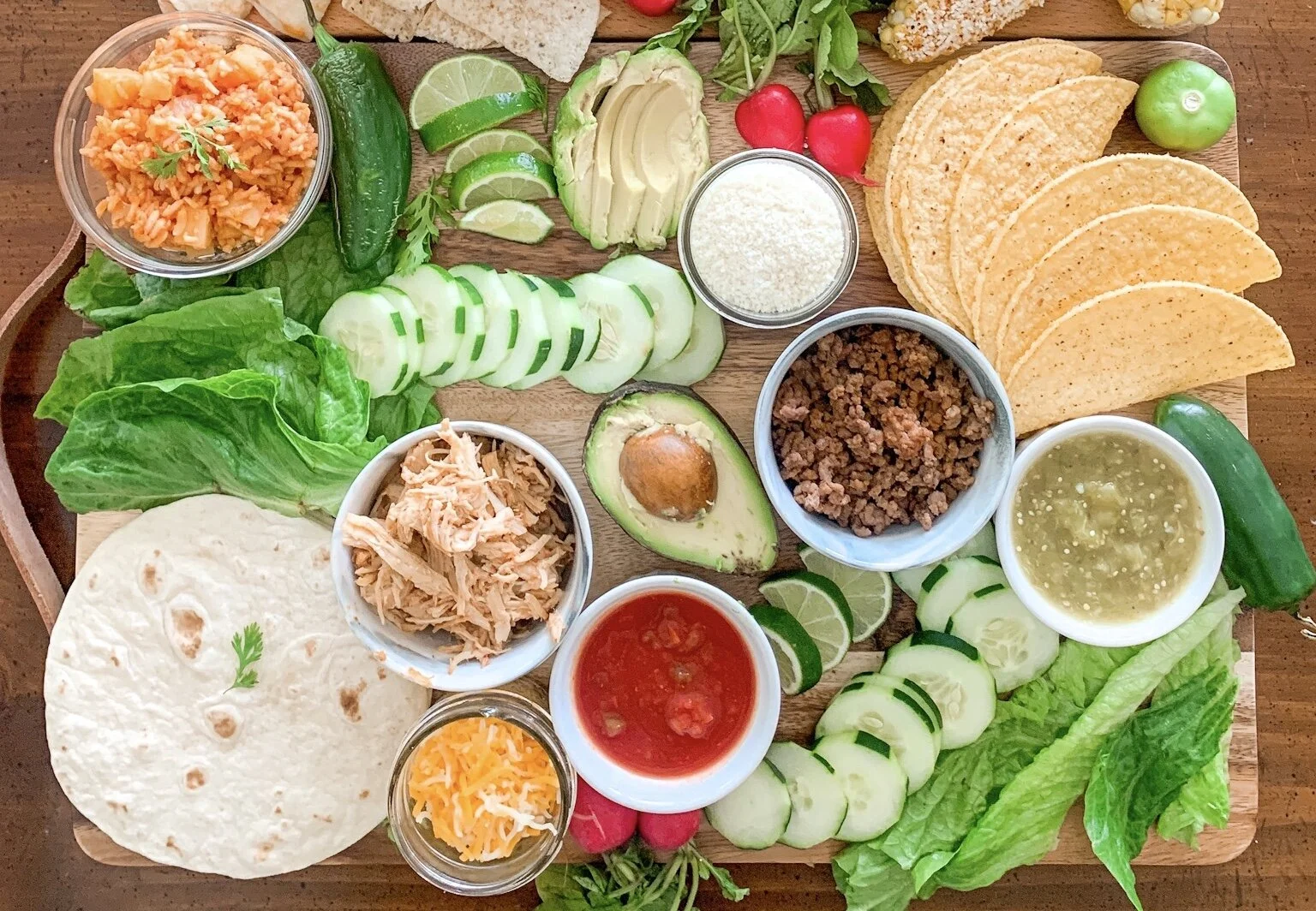 I had too much stuff to put on one board but not enough stuff to put on two boards. And I actually forgot two things I wanted to add to my taco board. I’m going to share everything I included (with recipes) as well as what I wanted to include!