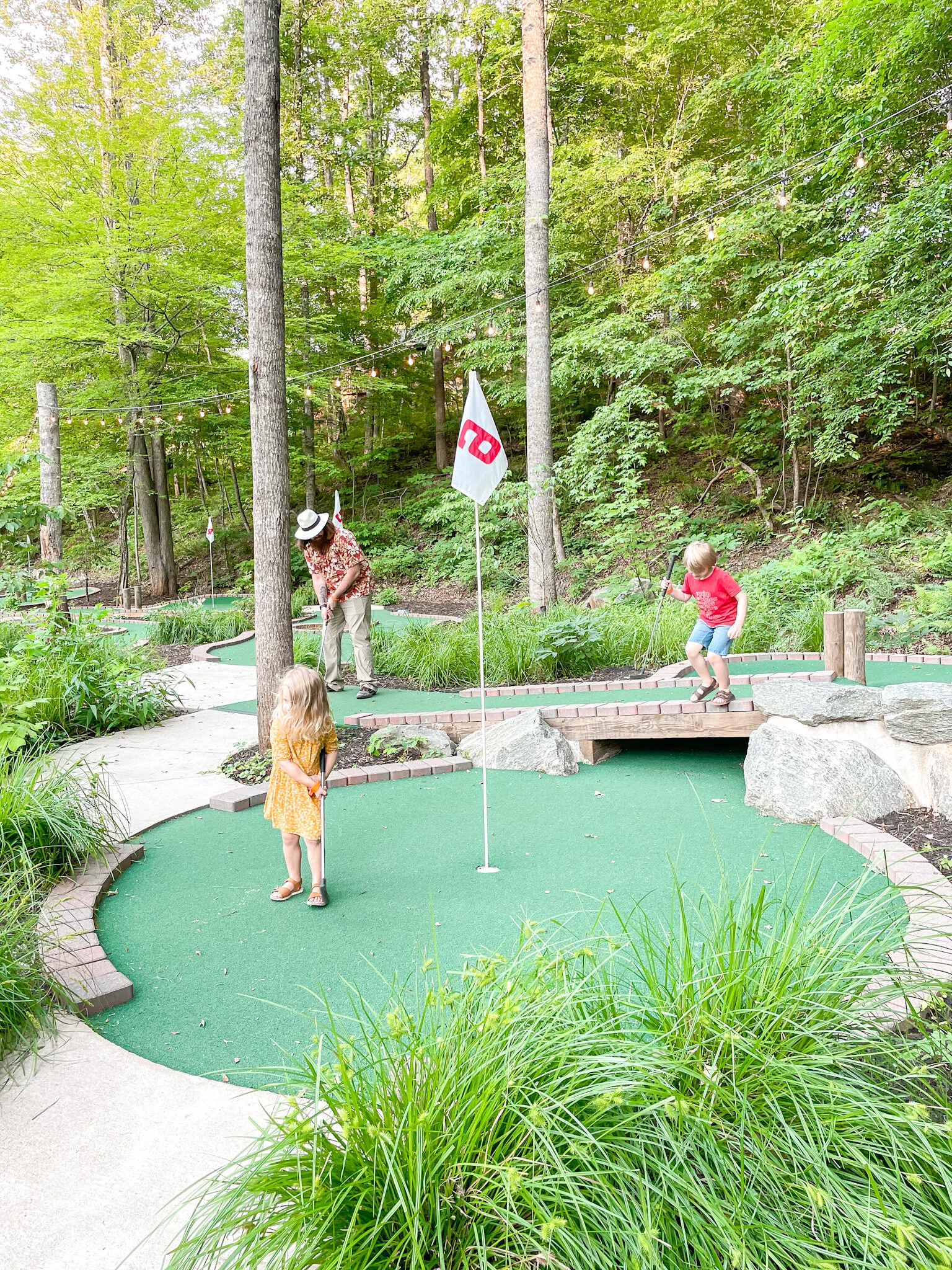 Mini Golf & Gem Mining are on the other side of the pool. They have everything you need to play already at the mini golf course and it’s such a beautiful course.