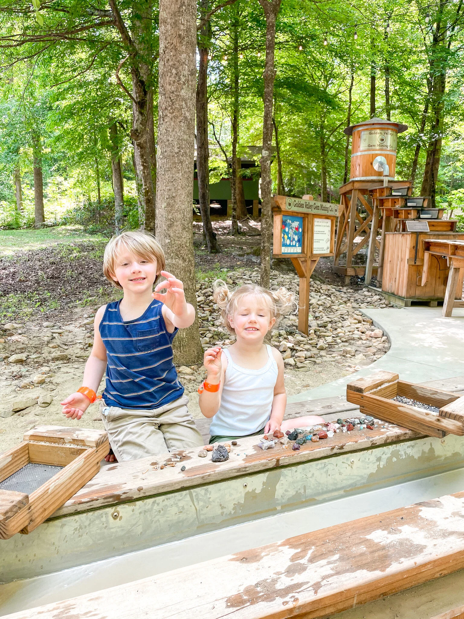 For Gem Mining you can pick up bags to sift through at the Check-In station when you arrive or at the Ranger Station beside the pool. They have guides to help identify what’s in your bag. The kids loved this activity!!