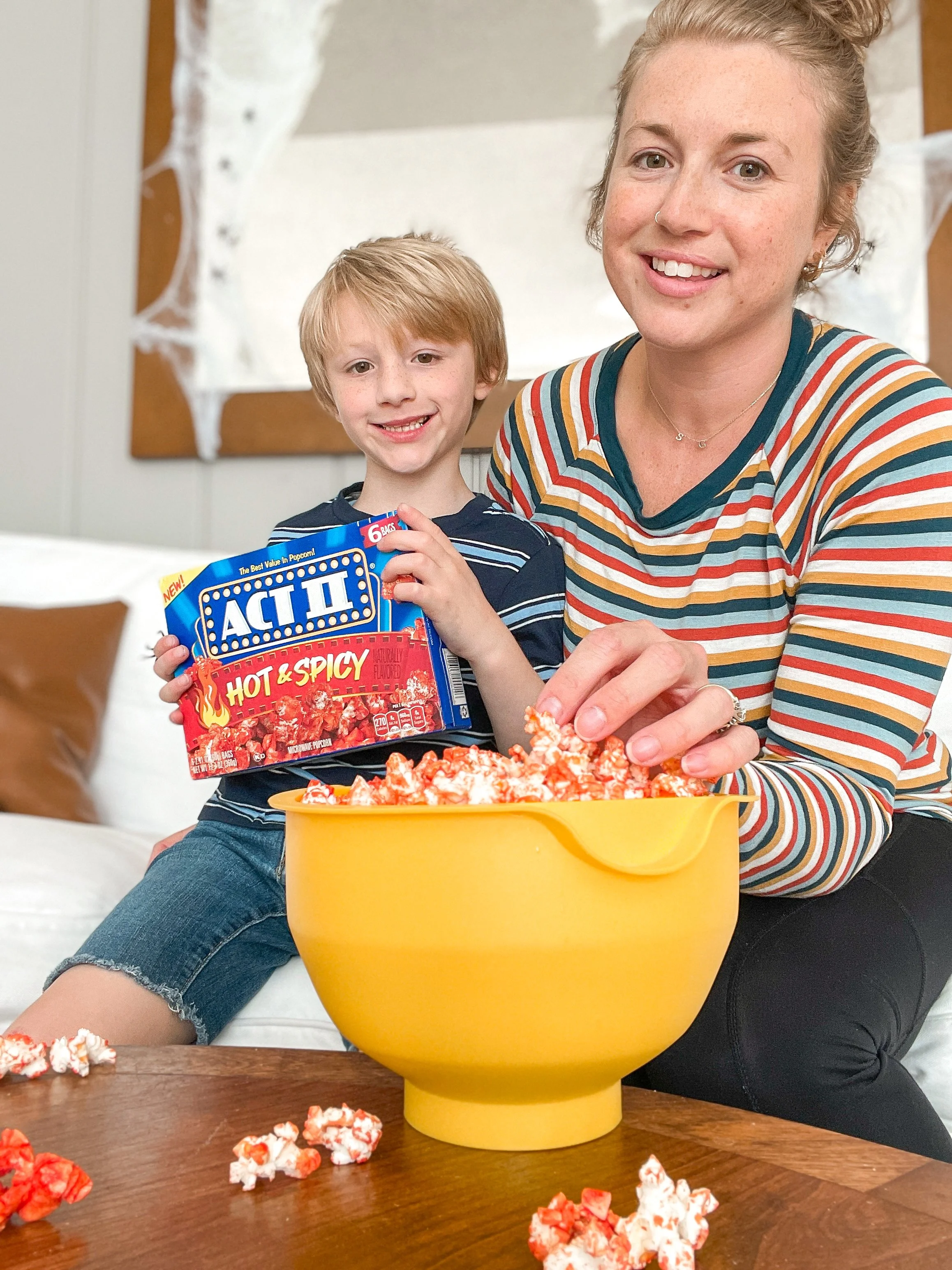 I enjoy spicy flavors but my son does not. He complains that garlic salt is “too spicy”. lol BUT he actually liked ACT II Hot & Spicy popcorn!