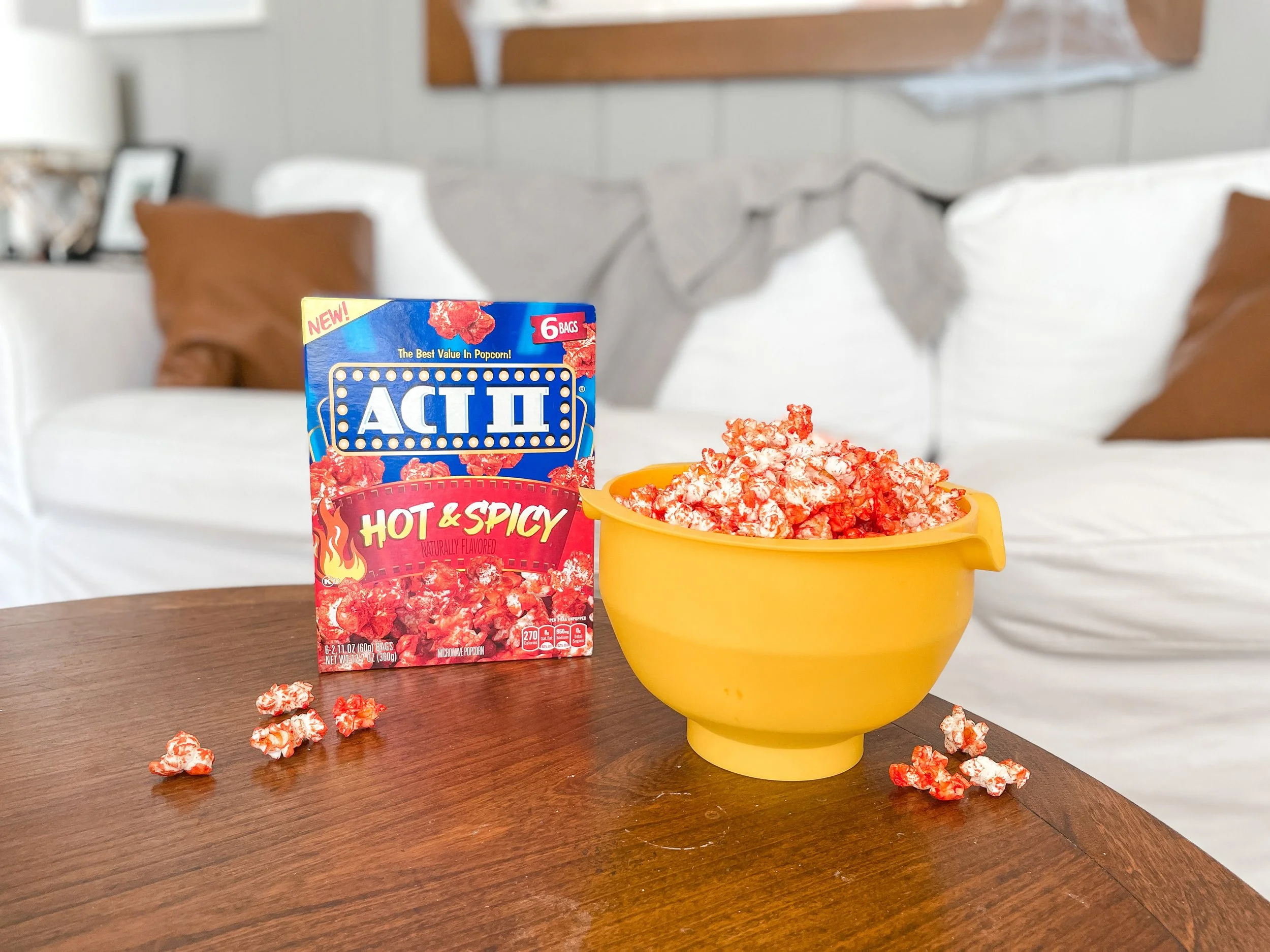 Bring the heat and elevate your movie night with NEW ACT II Hot & Spicy microwave popcorn. ACT II Hot & Spicy popcorn has fluffy, 100% whole-grain kernels that pop with a bold and spicy flavor and builds with every bite.