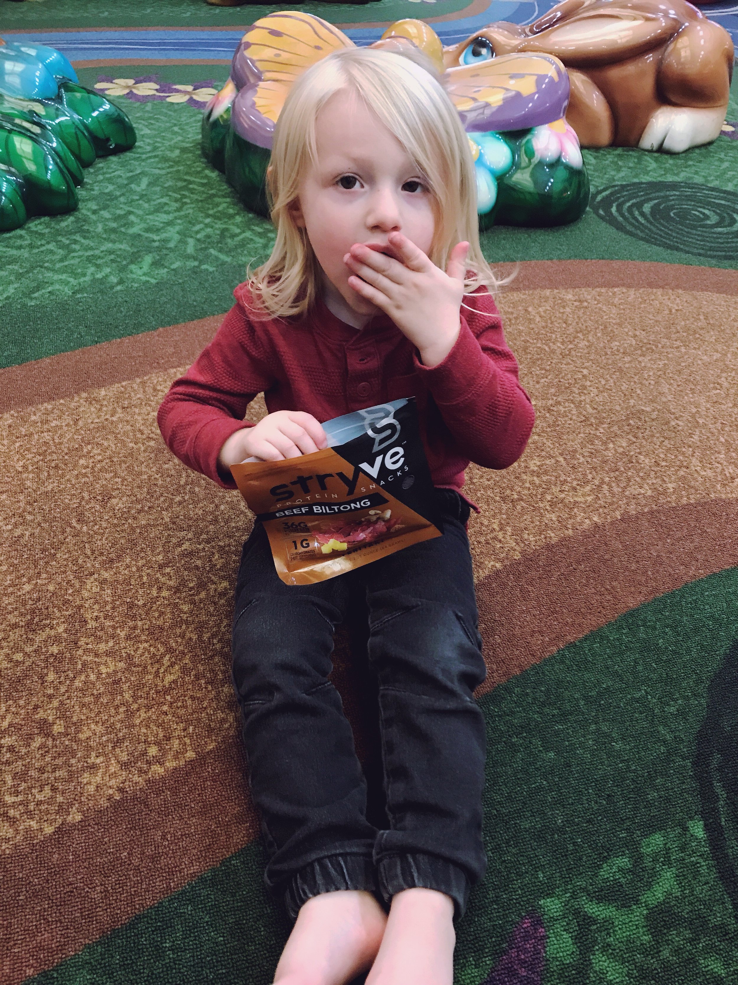 Biltong is just another way to cure the meat. It’s similar to jerky, but only because they are both dried meats. Biltong actually has a higher protein content, less water, a distinct flavor and is air dried for 21 days (versus jerky which is baked). It has no added sugars or hormones making it a healthier option than jerky. And aren’t we all looking for healthier snack options for our kids and ourselves? All of Stryve’s products are not only exceptionally well made, but they are also very high in protein.